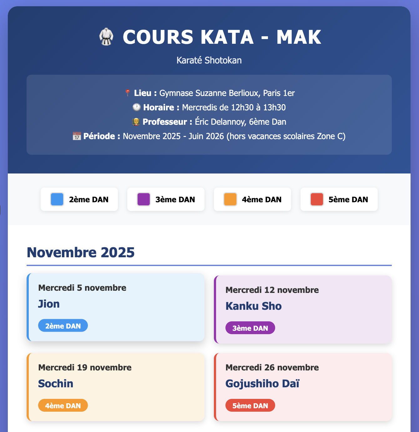 Rejoignez notre cours karaté Paris spécialisé dans les kata supérieurs Shotokan, dispensé par Éric Delannoy, ceinture noire 6ème dan de karaté-do. Ce cours karaté kata Paris d'exception se déroule chaque mercredi de 12h30 à 13h30 au prestigieux gymnase Suzanne Berlioux, en plein cœur de Paris 1er.